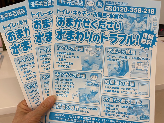 下水道の普及に伴って水洗洋式トイレのへの工事も地域一番の実績を積ませていただいております。人口形態が少子高齢化になりつつあるなかで誰もが安心して使用出来る水回りの提案、喜んでもらえるバリアフリー空間の提供をお手伝いさせていただけたら幸いです。平井百貨店 代表取締役 平井 通