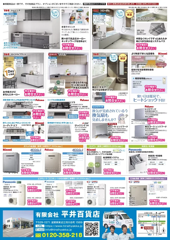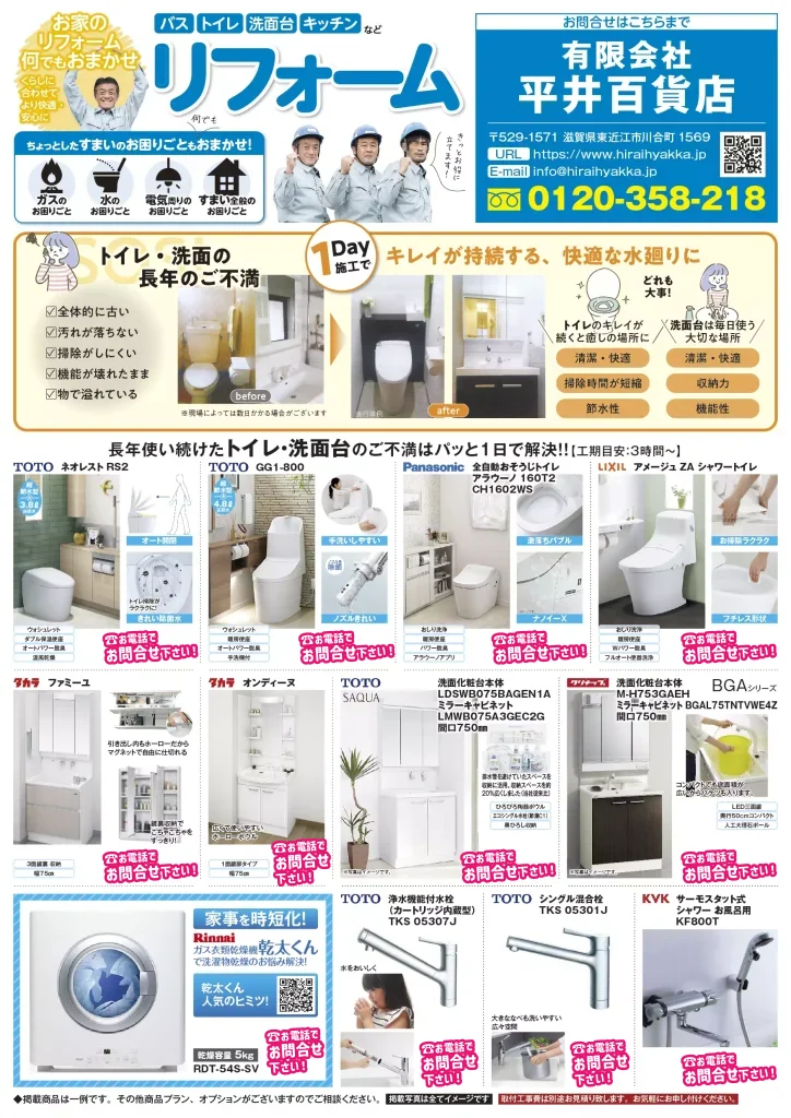 トイレ・キッチン・バスルーム・給湯器のリフォーム・修理は平井百貨店にお任せください。
