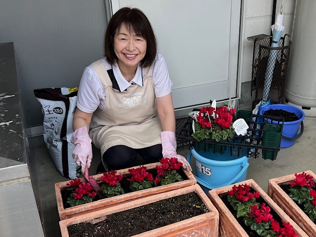 平井百貨店はこんなお店ショールームの花を植え替えたよ!