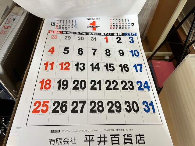 平井百貨店はこんなお店カレンダー今年も届きました!