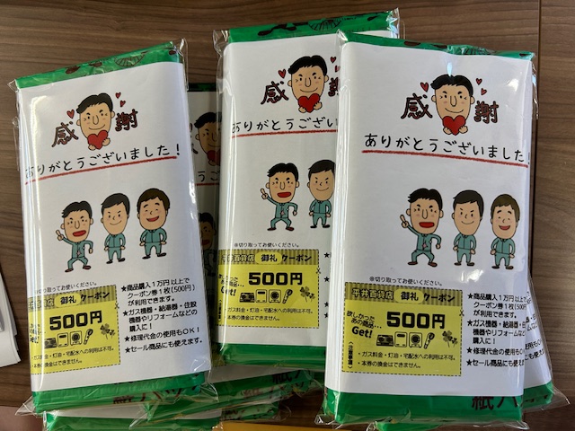そこで今回、いつもの粗品に500円クーポンを添えることにしました。