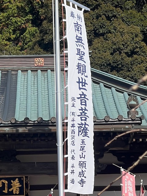 いつもお世話になっている観音様に、**「南無聖観世音菩薩」**と書かれたのぼりを奉納させていただきました。