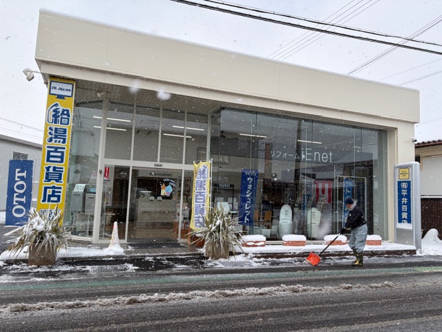平井百貨店では、朝からスタッフみんなで雪かきをしてくれました。