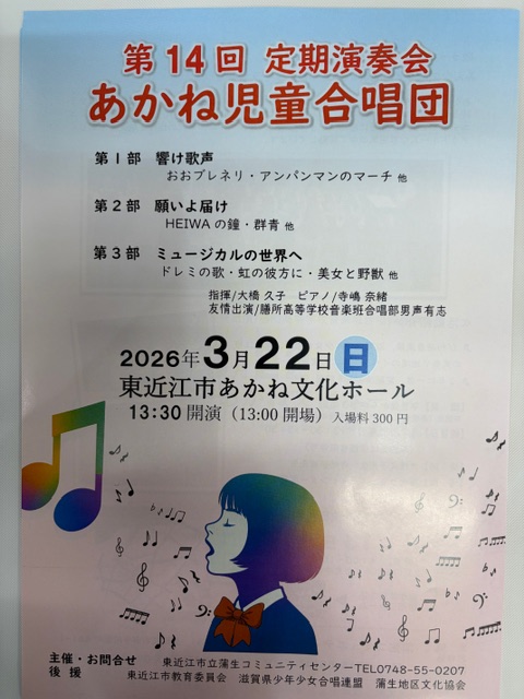 もうすぐ、あかね児童合唱団の定期演奏会が開催されます。